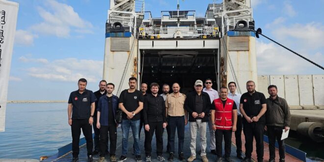 توجه السفير التركي في القاهرة، صالح موطلو شن، والسفير محمد غُللو أوغلو، الذي تولّى مهامه مؤخرًا كمنسق للمساعدات الإنسانية بفلسطين، إلى مدينة العريش بمحافظة شمال سيناء على الحدود المصرية مع غزة، حيث وصلت سفينتنا الإغاثية القادمة عبر البحر الأبيض المتوسط.