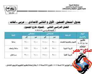 كما يؤدي طلاب الصفين الأول والثاني الأعدادي ( عربي – لغات ) امتحانات خارج المجموع خلال الفترة من 18 أبريل وحتى 20أبريل.