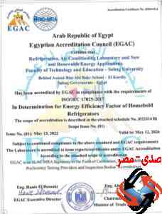 وأضاف الدكتور محمود سالم المدير التنفيذي للمشروع انه تم اعتماد المعمل بناءاً علي قرار اللجنة المستقلة للاعتماد، وذلك في قياس وحساب استهلاك الطاقة للثلاجات المنزلية، وتم استخراج شهادة الإعتماد بعد اعتمادها من وزير التجارة والصناعة.