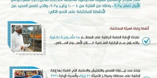 الهيئة القومية لسلامة الغذاء تصدر التقرير الأسبوعي الأول لعام 2025.