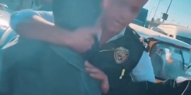 لكن الموقف ازداد توتراً حين تعدى الشاب على أحد الضباط أثناء محاولته إنقاذه .. رغم أن الضابط حاول تهدئته بصوتٍ حازمٍ مطمئن قائلاً: