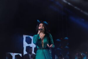 وأبهرت هيفاء الحضور الذي احتشد لمشاهدة وسماع فنانته المفضلة، بفستانها الأخضر الطويل من الساتان والذي بدت فيه تشبه السندريلا.