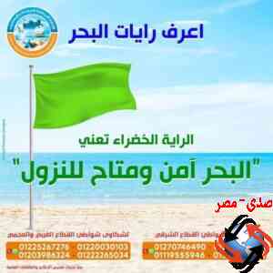 رفع الراية الخضراء تعنى إن حالة البحر آمنه وتسمح بالنزول للمياه.