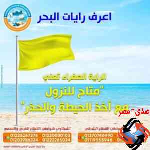 رفع الراية الصفراء تعني إن حالة البحر غير مستقرة نسبيا وتسمح بالنزول ولكن مع أخذ الحيطة الحذر.