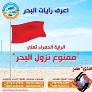 رفع الراية الحمراء تعنى خطورة وحظر النزول الي مياه البحر نهائيا ويجب الانصياع لتعليمات رجال الإنقاذ بشكل كامل .