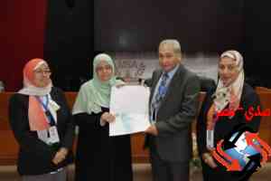 فى نهاية الورشة قام الأستاذ الدكتور خيري عبد الحميد رئيس الجامعة بتسليم دروع التكريم الخاصة بالجامعة الي الأستاذة الدكتورة أميرة التهامي رئيس لجنة القطاع و الرموز الهامة لمهنة العلاج الطبيعي.