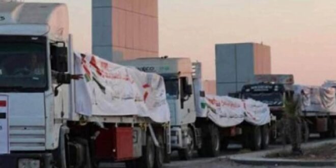 وقال مصدر مسؤول بميناء رفح البري بمحافظة شمال سيناء اليوم /الأحد/ إن شاحنات المساعدات الإنسانية ضمن القافلة الـ 58 من “زاد العزة من مصر إلى غزة” بدأت في الدخول من ميناء رفح البري حاملة مواد إغاثية متنوعة من السلال الغذائية والدقيق والمستلزمات الطبية، إلى جانب دخول معدات ثقيلة لإزالة الركام.. مشيرا إلى أن الشاحنات تخضع للتفتيش من سلطات الاحتلال الإسرائيلي قبل دخولها إلى القطاع.