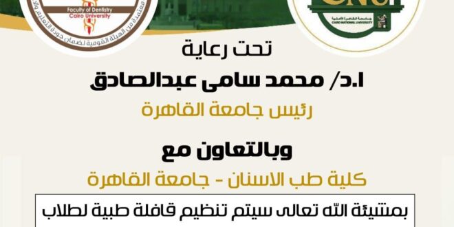تنظم الجامعة تحت رعاية الدكتور محمد سامي عبدالصادق المكلف بأعمال رئيس الجامعة، وفي إطار اهتمام جامعة القاهرة الأهلية برعاية أبنائها الطلاب صحيًا وتعزيز بيئة جامعية آمنة وداعمة، قافلة طبية للكشف على طلاب القطاع الطبي، وذلك بالتعاون مع كلية طب الأسنان بجامعة القاهرة،
