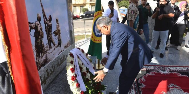 محافظ الدقهلية يضع اكليل الزهور على النصب التذكاري للشهداء احتفالا بذكرى انتصارات أكتوبر المجيدة