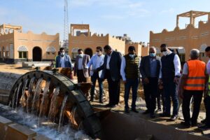 وعقب تركيب وتشغيل السواقي، قام محافظ الفيوم ومرافقوه، بتفقد الأعمال الإنشائية بالمنطقة، موجهاً بتكثيف زراعة أشجار الزينة، واستخدام الدهانات التي تتوائم وطبيعة المنطقة، فضلاً عن المساحات الخضراء المفتوحة.
