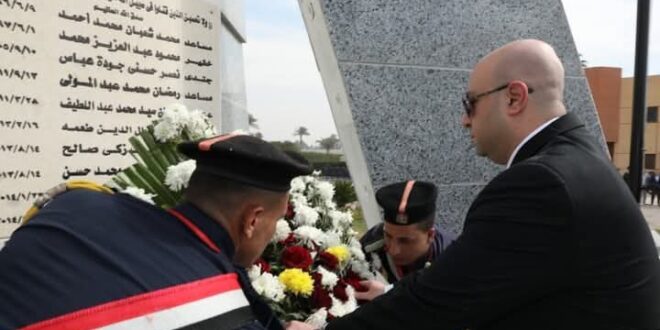 محافظ بني سويف يضع إكليل الزهورعلى النصب التذكاري للشهداء بمعسكرأبو سليم