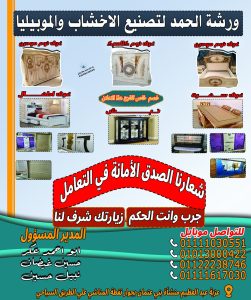 مما لا شك فية أن ورش ومعارض الموبيليا بالفيوم قد إنتشرت إنتشارا ليس له حصر ولكن نظرا لزيادة أسعار الذهب والدولار إتجه أصحاب هذه المعارض هم أيضا إلى استغلال الحالة الاقتصادية التى يعيشها المواطنين فقاموا برفع الأسعار فى غفلة من رقابة المسؤلين إلا أننا وجدنا أنفسنا أمام حاله فريدة فرضتها ورش ومعارض الحمد لتصنيع الأخشاب والموبيليا ومقرها قرية عبد العظيم بجوار نقطة المناشى على الطريق السياحى التابعة لمنشأة بنى عتمان فقد أخد صاحب الورشة والمعرض ومديرها المسؤل الاستاذ شعبان غيضان وشهرتة أبو أحمد عكر عهدا ووعدا أن يكون ناصرا للفقراء ولكل من يحتاج الية وخاصة الارامل الذين شقت عليهم الحياة فى تجهيز بناتهم لمواجهه حياة جديدة فأًصبحت ورشة ومعارضة ملكا للغير وليست له فهو يمتلك أمهر الصناع فى مجال صناعة الاثاث المصرى كما أنه أصبح المحارب الاول لجشع التجار ممن يملكون المعارض الكبرى كما أن الاسعار لدية القسط بسعر الكاش وأما عن الغرف التى أتقن صناعة صناعتها فهى متنوعة ما بين غرف نوم كلاسيك ومودرن ونيش والسفرة وغرف أطفال فالاشكال فى قمة الروعة والجمال وكأنك أمام تحفة معمارية تراها لأول مرة حيث تجد البساطة والذوق العالى