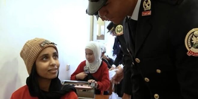 وفى تطبيق عملى لمفاهيم حقوق الإنسان التى يتم غرسها فى طلبة كلية الشرطة ،