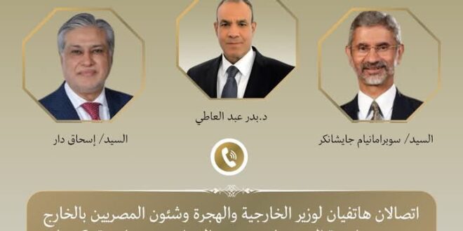 أجري د. بدر عبد العاطي وزير الخارجية والهجرة اتصالين هاتفيين مع كل من السيد/ سوبراهمانيام جايشانكار وزير الخارجية الهند والسيد/ اسحاق دار نائب رئيس الوزراء ووزير خارجية باكستان.