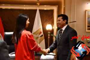 وزير الرياضة يستقبل حبيبة مرزوق” لاعبة الجمباز الايقاعي