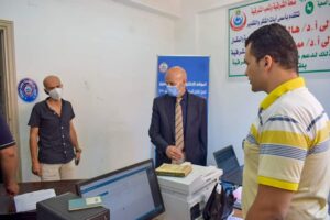 للمسجلين علي موقع التسجيل الإلكتروني التابع لوزارة الصحة والسكان، واستخراج الشهادات المعتمدة للحاصلين علي لقاح فيروس كورونا المستجد كوفيد ١٩، للمواطنين الراغبين في استخراجها، وقام وكيل الوزارة بالتأكد من انتظام سير العمل، وإتباع كافة الإجراءات الوقائية والتدابير الاحترازية أثناء العمل، ومن