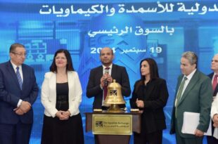 رئيس البورصة يشارك قيادات الشركة الدولية للأسمدة والكيماويات فعالية “قرع الجرس”
