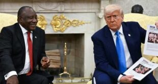 كتب/ أيمن بحر فاجأ الرئيس الأميركى دونالد ترامب رئيس جنوب إفريقيا سيريل رامافوزا فى المكتب البيضاوى بأدلة على ما اعتبرها إبادة جماعية ضد البيض فى جنوب إفريقيا تتضمن مقاطع فيديو وصورا. فخلال اجتماع الطرفين أمام وسائل الإعلام واجه ترامب رامافوزا بمقاطع فيديو مثيرة ومقالات إخبارية قال إنها دليل على إبادة جماعية ضد البيض فى جنوب إفريقيا.وكان الاجتماع فى المكتب البيضاوى …